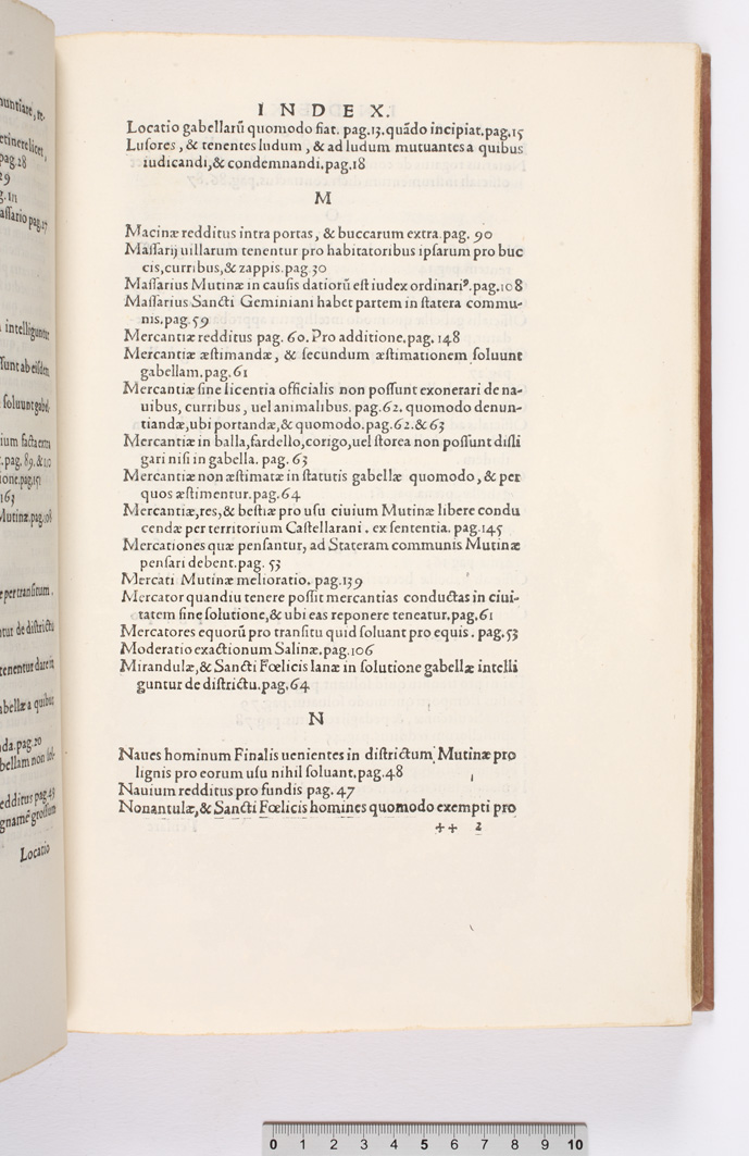 punto beige Index eorum quae in statutis gabellarum & earum prouisionibus, & additione mercantiae continentur. (c. ☩4v-2☩4v)