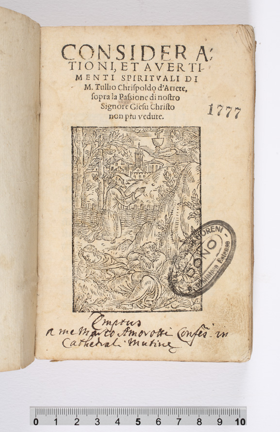 Considerationi, et auertimenti spirituali di m. Tullio Chrispoldo d'Ariete, sopra la passione di nostro signore Giesu Christo non pił vedute. -