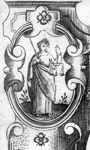 Le virtù cardinali, con la Pace e la Sapienza (?), sono infatti quelle che si richiedono a chi si trovi al governo dello stato, al politico di cui si occupa l'opera di Lipsio dove troviamo questa cornice incisa.