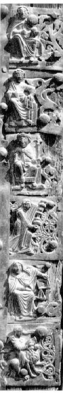 Nella porta in bronzo di san Zeno, a Verona, sul bordo destro del battente di sinistra si trova una serie di piccoli pannelli quadrati. Risalgono in parte alla fine dell'XI secolo e in parte -- come il gruppo che qui ci interessa, con la rappresentazione delle virtù cardinali -- alla seconda metà del XIII secolo.