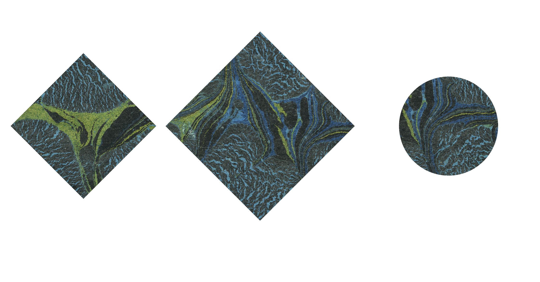 al quarto numerazione del volume in cornicetta ovale; in testa al dorso fascetta decoraativa aa secco. Sui piatti carta marmorizzata policroma in blu, nero e verde. Tagli spruzzati in nero