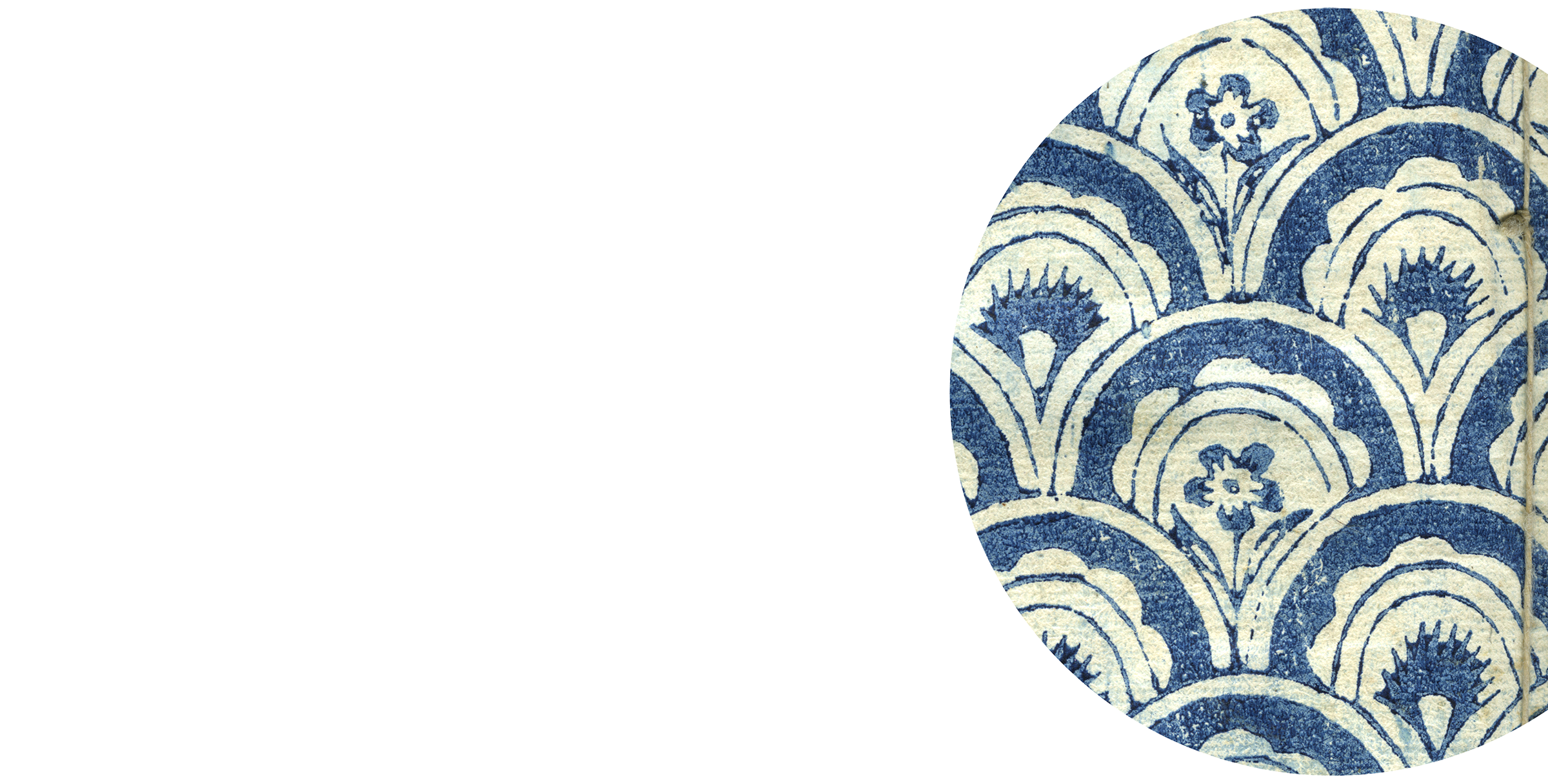 Fascicoli cuciti tra loro con copertina coeva in carta decorata incollata e cucita al dorso (mm 172 x 115 x 5). La carta xilografata, stampata in blu su fondo bianco, è una di quelle del campionario Bertinazzi conservato alla Biblioteca Poletti di Modena (campione 299).