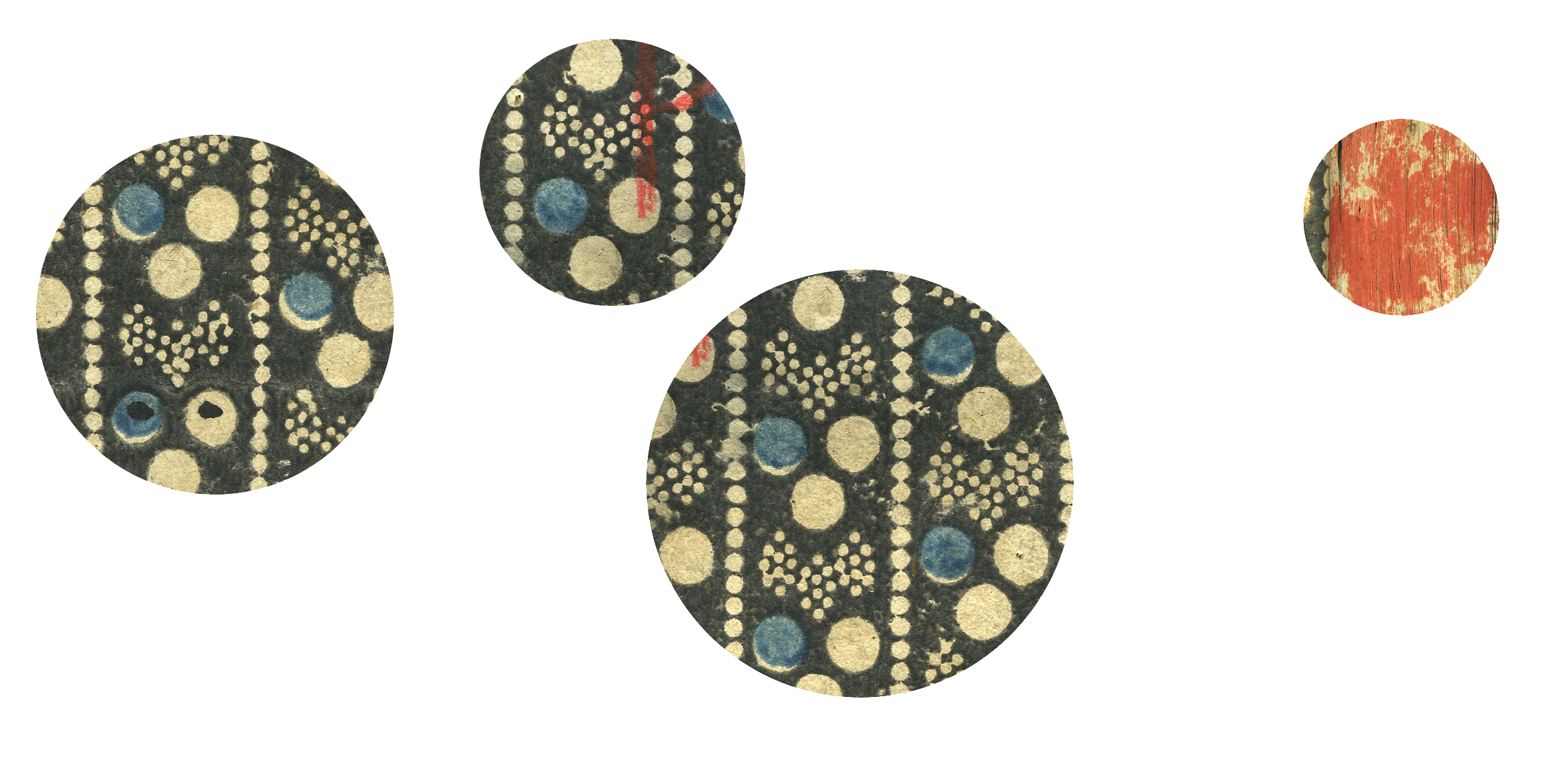 Legatura coeva in carta decorata su cartone (mm 205 x 132 x 23); dorso liscio su due nervi; senza capitelli. Tagli marmorizzati in rosso.